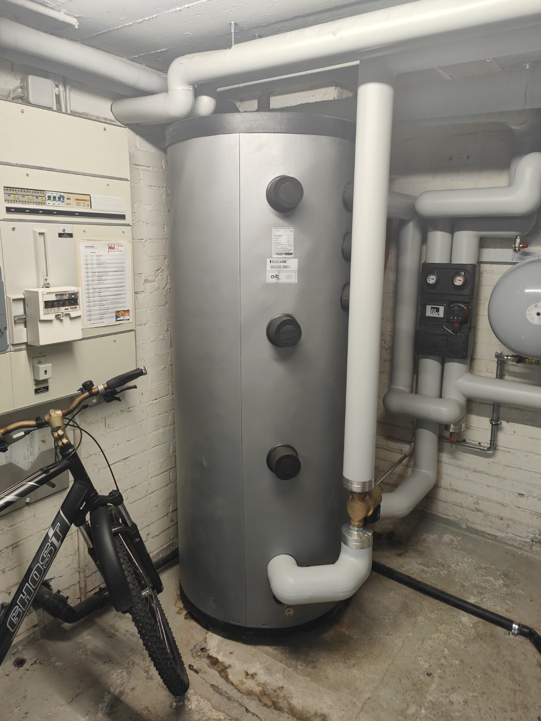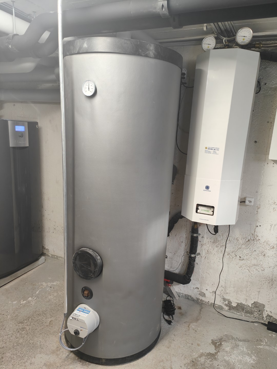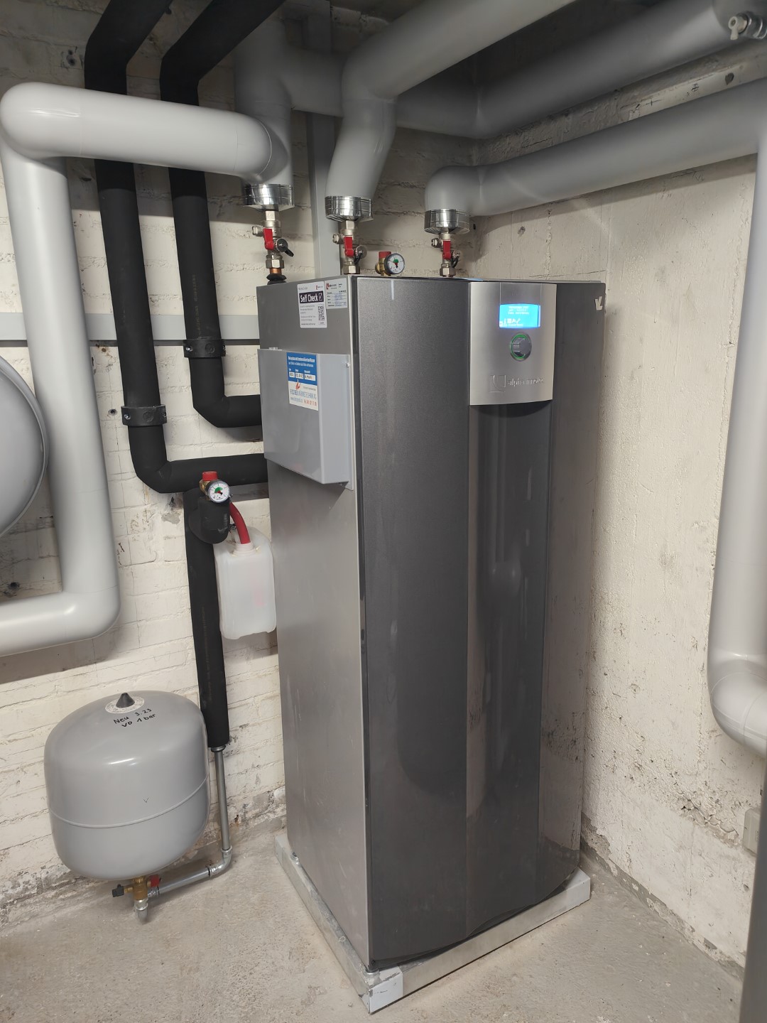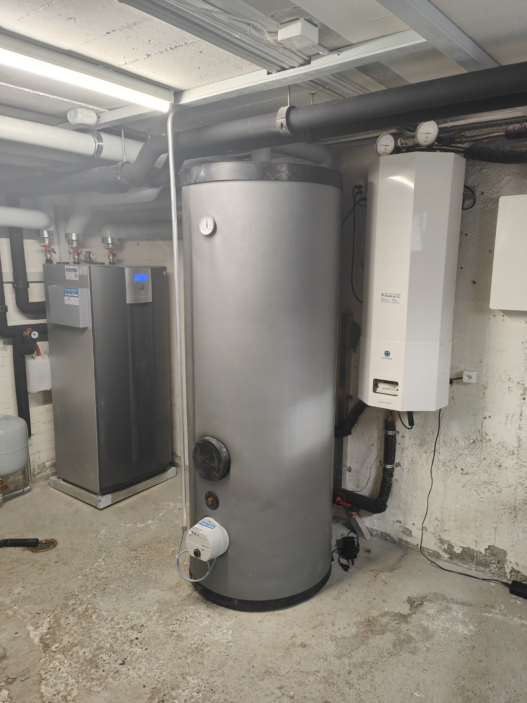 Wärmepumpe. Die bestehende thermische Solaranlage wurde wieder an den neuen Boiler