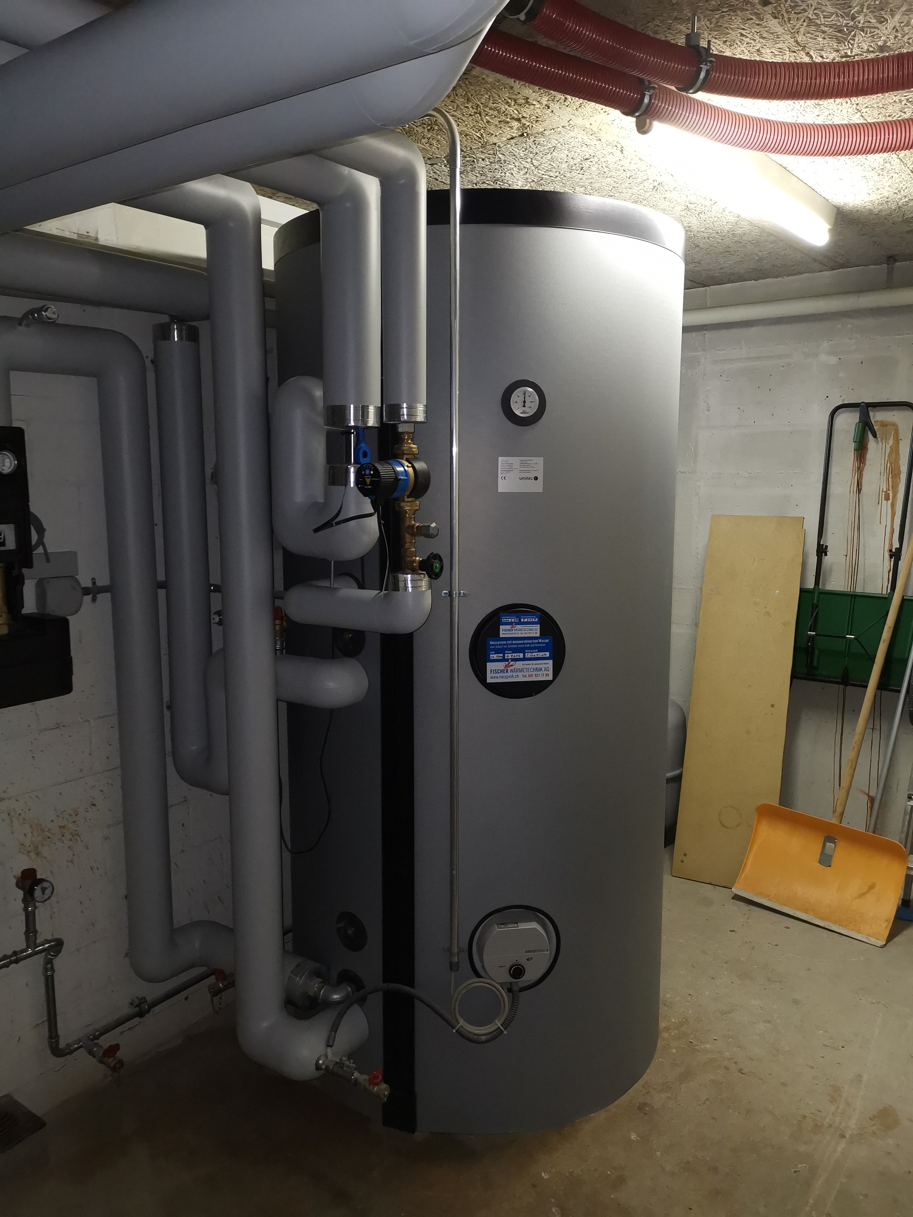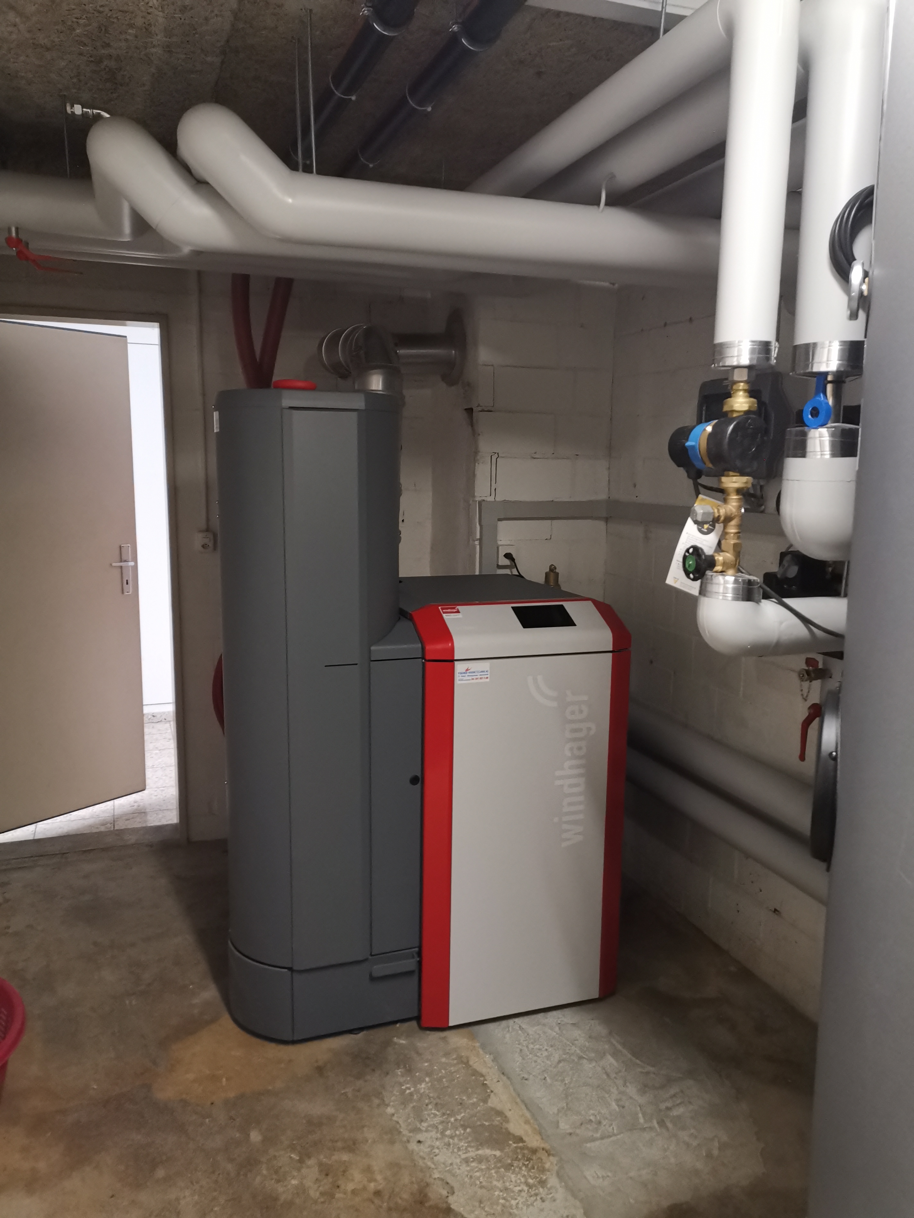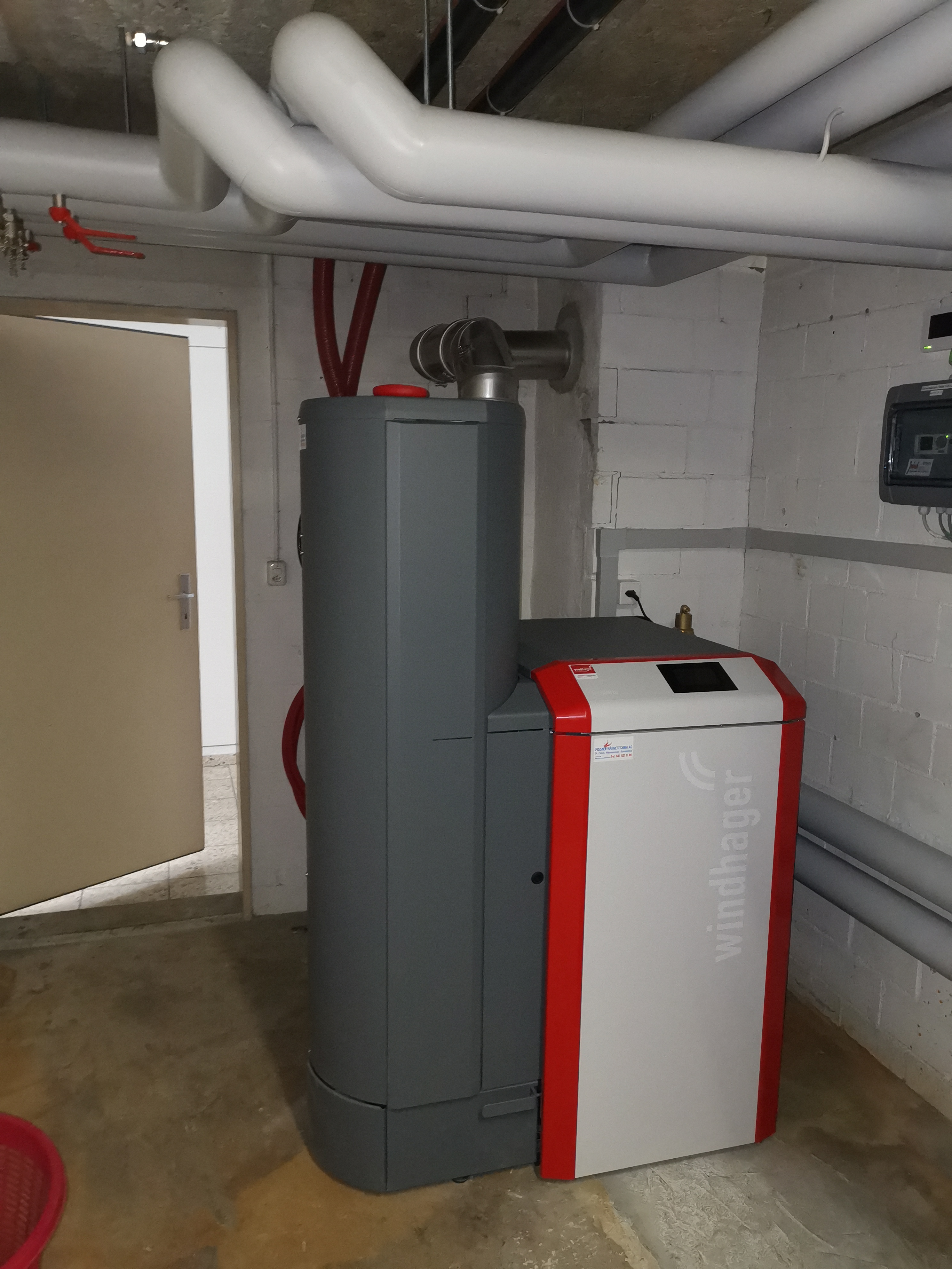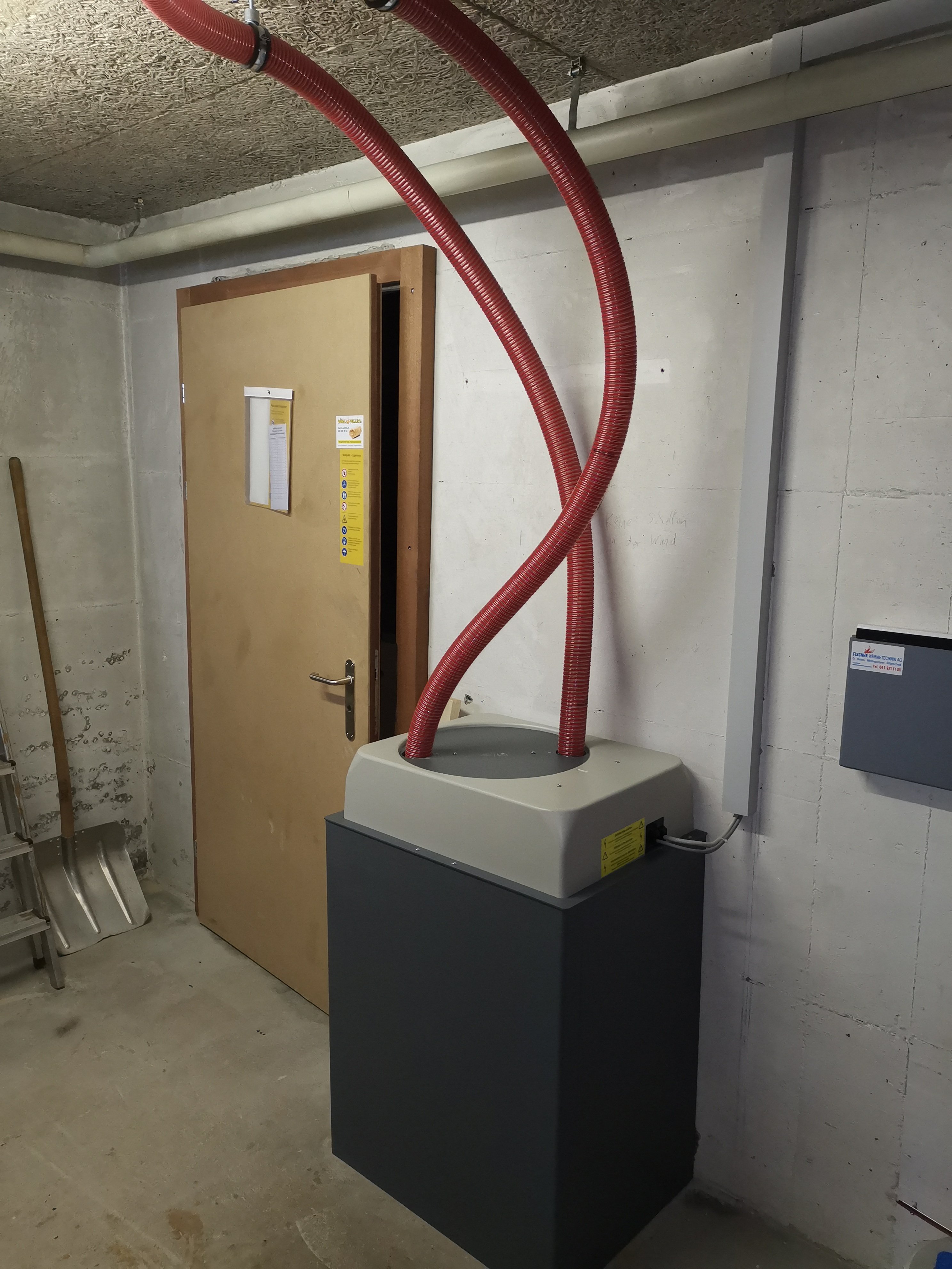 Da bei diesem Mehrfamilienhaus weder eine Erdsonden- noch eine Luft-Wärmepumpe in Frage kamen, bauten auf Wunsch der Bauherrschaft eine Pelletsheizung ein. Die alte Ölheizung mit Unterstellboiler wurde hierbei durch eine moderne Pelletsheizung mit neuem Boiler ersetzt. Der alte Tankraum wurde zum Lagerraum für die Pellets umgenutzt. Dabei transportieren mehrere Saugsonden die Pellets zum Pelletskessel.