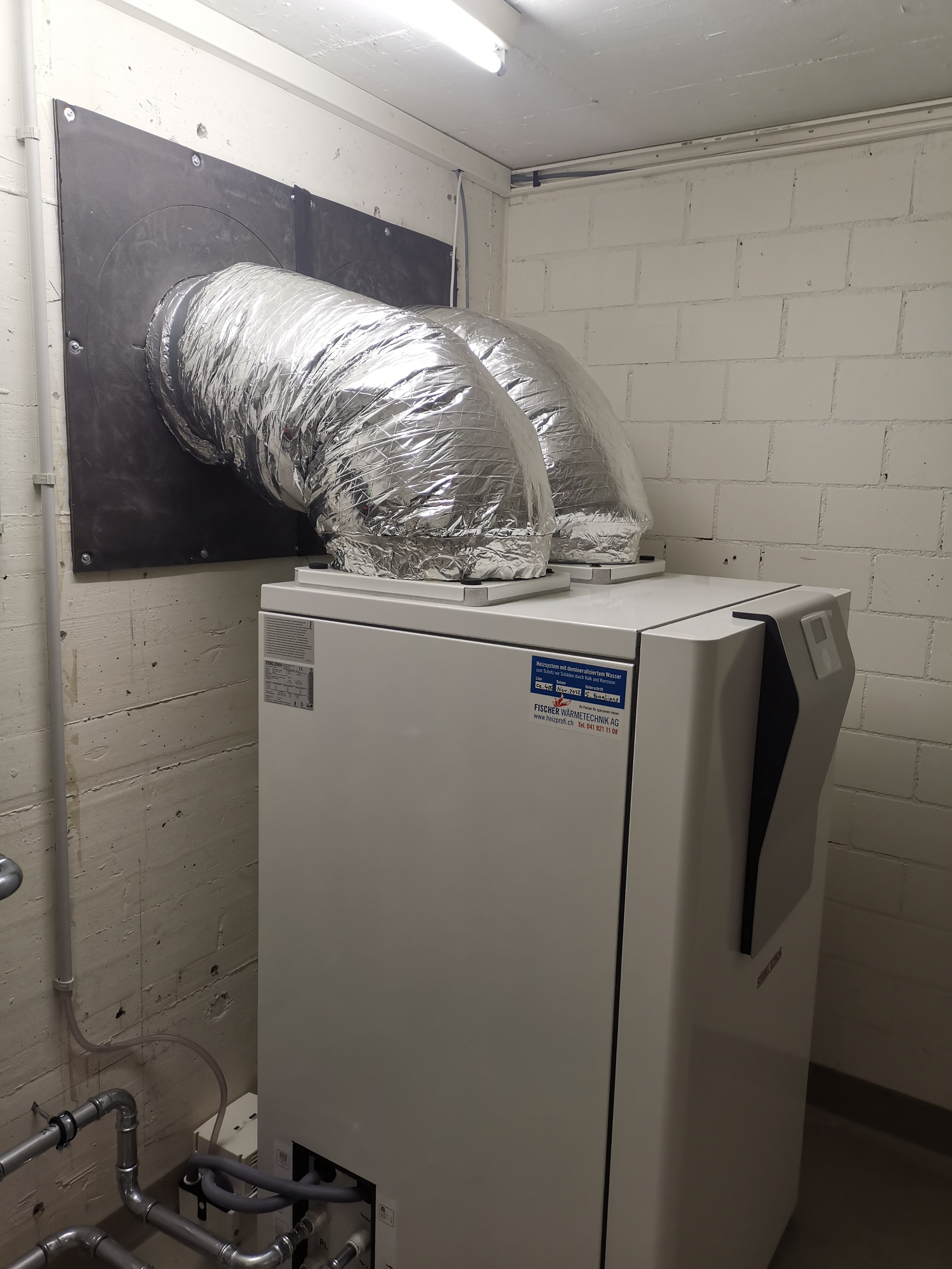 Vor kurzem installierten die Heizprofis eine innenaufgestellte Luft-Wärmepumpe in einem Reiheneinfamilienhaus. Die Wärmepumpe ist sehr leise, was nicht nur der Bauherrschaft sondern auch der Nachbarschaft ein wichtiges Anliegen war. Das Haus wurde lange mit einer elektrischen Luftheizung beheizt. Seit einiger Zeit aber nur noch mit einem Holzofen im Wohnzimmer. Es war bisher kein Radiatoren- bzw. Bodenheizungssystem vorhanden. Neu wurden im Erd- und Obergeschoss im bestehenden Unterlagsboden Rillen für die Verlegung von Bodenheizungsrohren eingefräst. Zudem wurden im Untergeschoss 3 Heizkörper installiert. Fischer Wärmetechnik agierte als Generalunternehmer für den kompletten Auftrag.