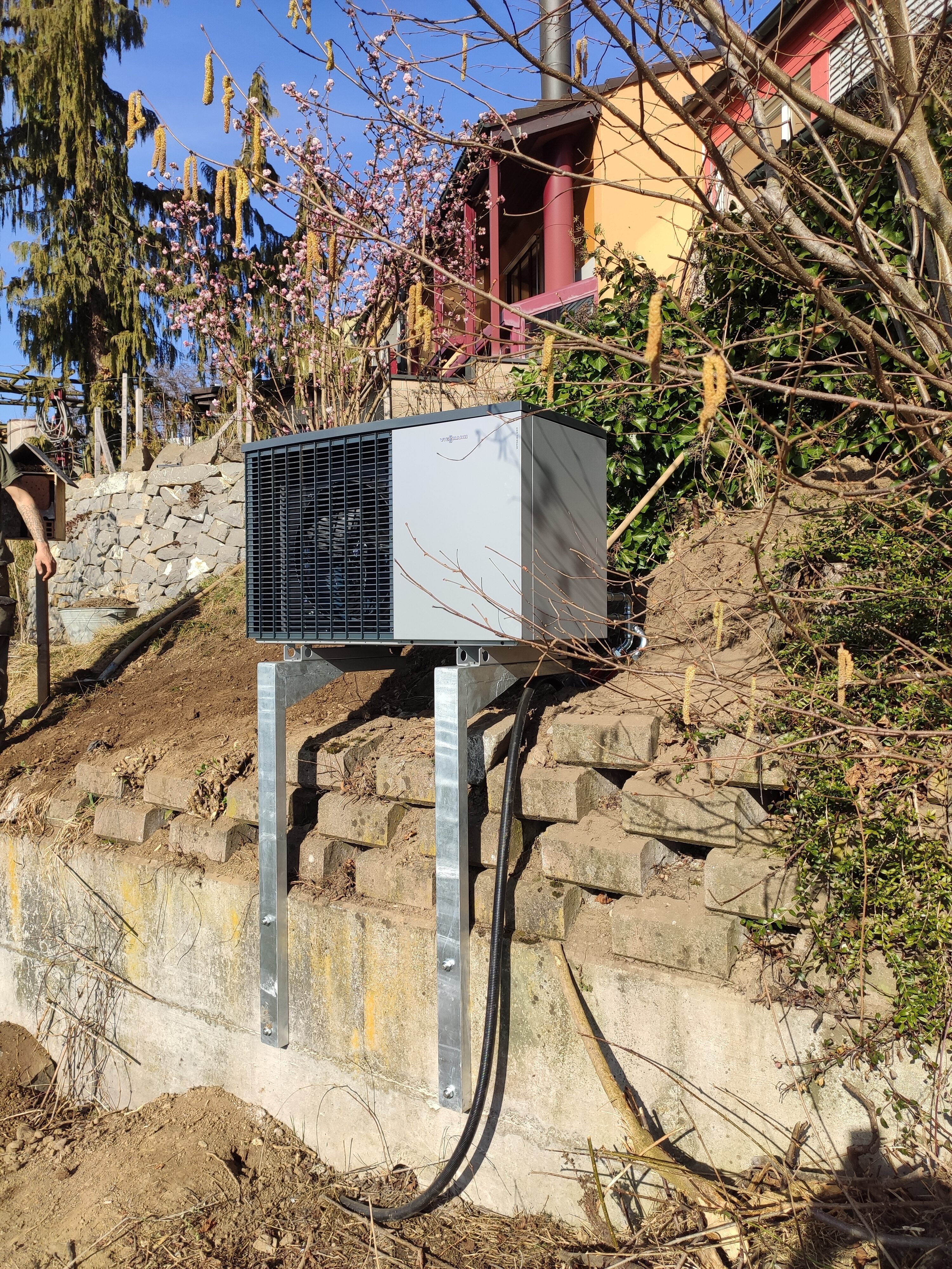 In Oberkirch haben wir kürzlich eine alte Ölheizung gegen eine wassergeführte Luft-Wärmepumpe ersetzt. Speziell dabei war die Montage mittels einer extra angefertigten verzinkten Konsole, welche wir an der Stützmauer befestigt haben. Dadurch musste kein Fundament für die Wärmepumpe erstellt werden. Das sagen die Kunden: «Vor zwei Monaten hat uns Fischer Wärmetechnik eine neue Luft-Wasser-Wärmepumpenheizung installiert. Da unser Haus gut gedämmt ist, handelt es sich um ein erstaunlich kleines Gerät. Besonders überzeugt hat mich, dass alle beteiligten Handwerker durch Fischer koordiniert wurden – das hat einwandfrei geklappt.» Meta Lehmann, Ökonomin und Kantonsrätin, Oberkirch